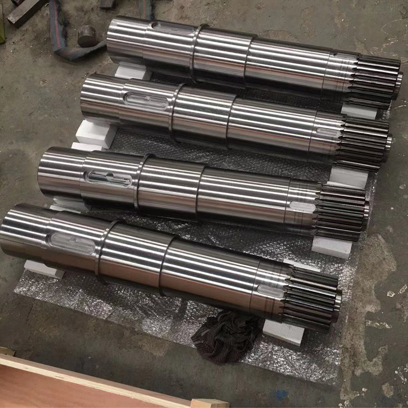 棒料、鍛件 → 粗車加工 → 調(diào)質(zhì) → 精車加工 → 銑鍵槽 → 熱處理(表面淬火貨滲碳淬火) → 研磨中心孔 → 粗磨 → 精磨 → 成品檢測(cè)包裝